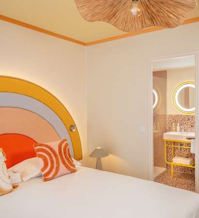 Les chambres, modernes, affichent des tons colorés et une décoration vintage californienne