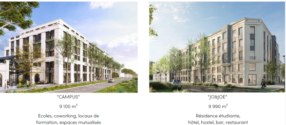 Etendu sur plus de 19 000 m² de surface de plancher, ce vaste ensemble hybride comprendra un bâtiment dédié à l’enseignement et au coworking, dont une partie sera occupée par l’école Ynov Campus, et un bâtiment pensé en collaboration avec la filiale lifestyle du Groupe ACCOR (Ennismore) sous la marque “JO&JOE”, un lieu de vie hybride comprenant une résidence étudiante, un hôtel, un hostel, un bar et un restaurant.