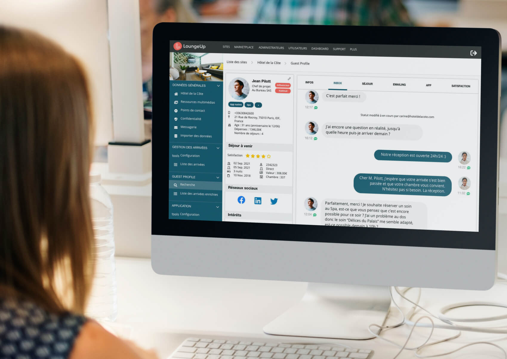 ① Utiliser un CRM qui centralise les informations dans des fiches clients. Les informations clients sont réparties un peu partout dans les logiciels utilisés par l’hôtel : les coordonnées à jour, les informations des réservations passées, présentes et futures dans le PMS, les commandes de room service et réservations de table dans le logiciel du restaurant, les commandes de soins dans le logiciel du spa, les avis laissés par le client dans le logiciel d’e-réputation, etc. Non seulement un logiciel central va pouvoir compiler toutes ces données, les nettoyer, les dédoublonner et les ranger dans la fiche de chaque client, mais elle va permettre pour l’hôtelier d’avoir un seul écran et des données toujours à jour.