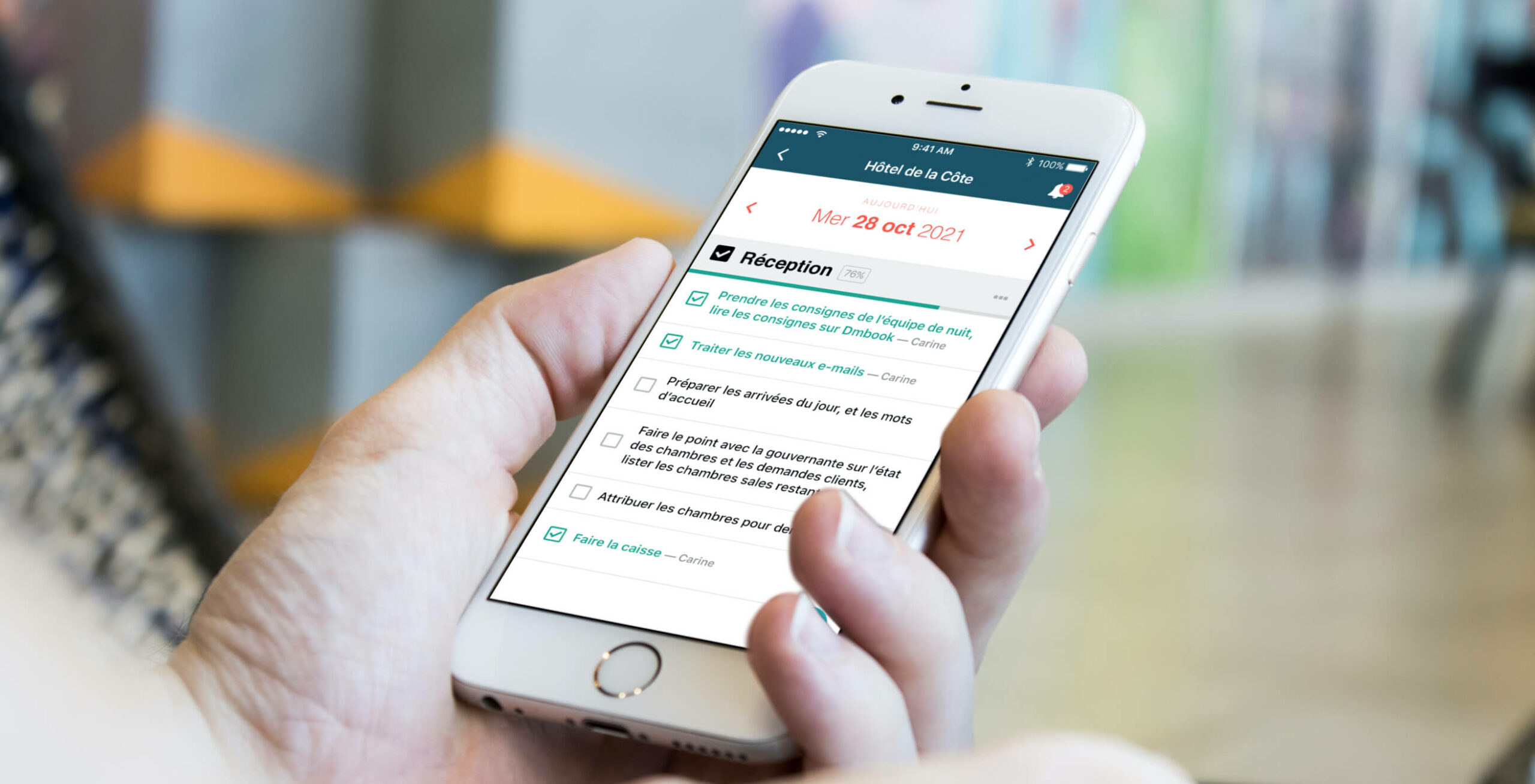 ① S’équiper d’un outil de gestion des tâches et des procédures adapté à l’hôtellerie. On ne peut pas attendre de bon travail sans bon outil. Ce type de logiciel fonctionne comme un cahier de consigne digital qui permet à vos équipes de prendre connaissance de ce qui s’est passé dans l’hôtel en leur absence et de reprendre efficacement le relais, mais également de pouvoir suivre de loin les événements dans l’hôtel. Couplé à des fonctions de ticketing utilisées par tous les logiciels de support client, l’outil permet de ne rater aucune commande client, aucune remontée de problème, ou toute autre requête reçue par différents canaux (téléphone, oral à la réception, SMS, etc.) et de veiller à leur bon traitement par les personnes en charge.