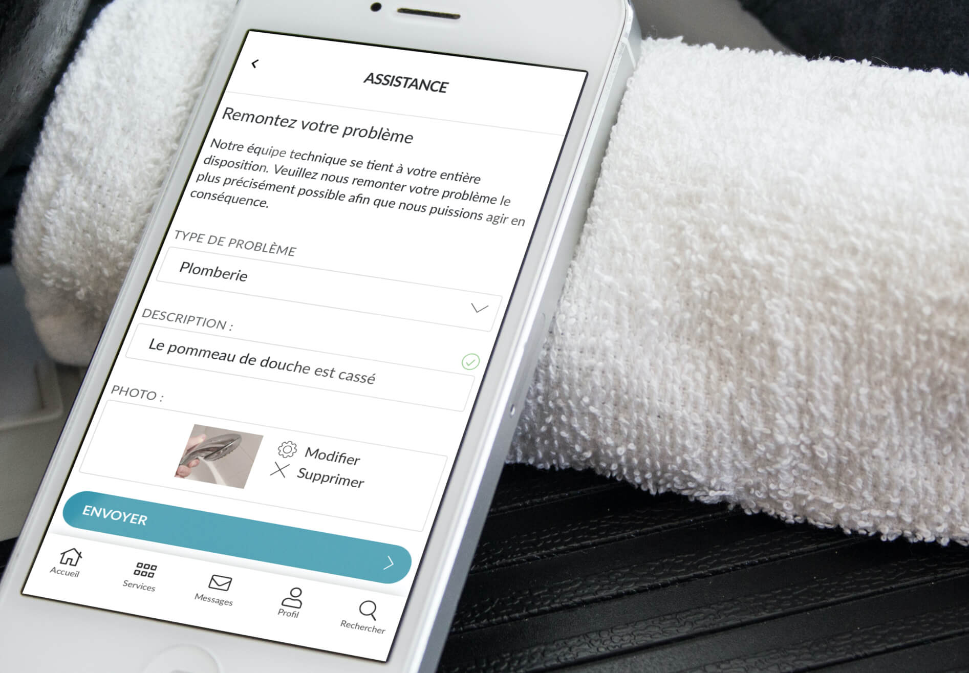 ⚠️ Plus vous donnerez de moyens à vos clients de remonter un souci, plus vous arriverez à détecter les insatisfactions à temps. Incorporez par exemple dans votre application ou portail client un formulaire pour décrire le problème et associer une photo. Le formulaire complété est ensuite automatiquement dirigé à la bonne personne en charge en fonction de ce qui a été sélectionné par le client (dysfonctionnement d’équipement, linge à la gouvernante, bruit, etc.)