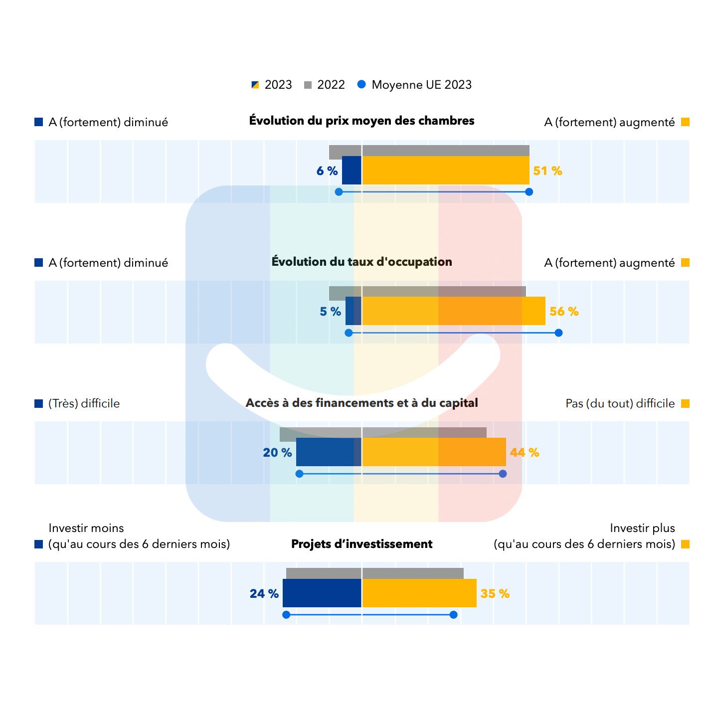 Ça y est, plus que quelques jours avant le “top départ” de la saison et, déjà, un sentiment plutôt positif chez les hôteliers français interrogés par Statista pour le compte de Booking, partout en Europe. Si le moral était “moyen-moyen” jusqu’à présent, la plateforme relève “un changement définitif avec des visions très positives des hôteliers sur les six prochains mois !”. Et ce sentiment optimiste semble d’ailleurs bien démarquer les hôteliers français de leurs homologues européens, interrogés dans les mêmes conditions par Booking. Faut-il y voir là un effet Coupe du Monde de Rugby et JO2024 ? Probablement ! Car, avec un optimisme partagé par 23% (l’an dernier à la même époque) à 49%, aujourd’hui, il n’y a clairement pas photo !