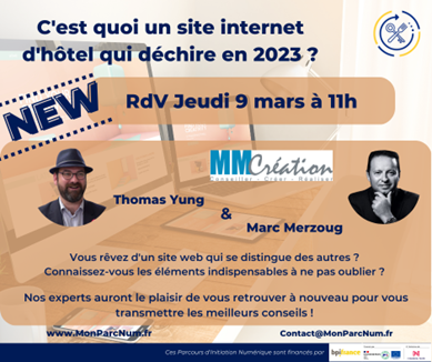Thomas YUNG, notre expert numérique et son invité Marc Merzoug de MMCréation, vous retrouvent le jeudi 9 mars à 11h pour vous expliquer plus en détails :