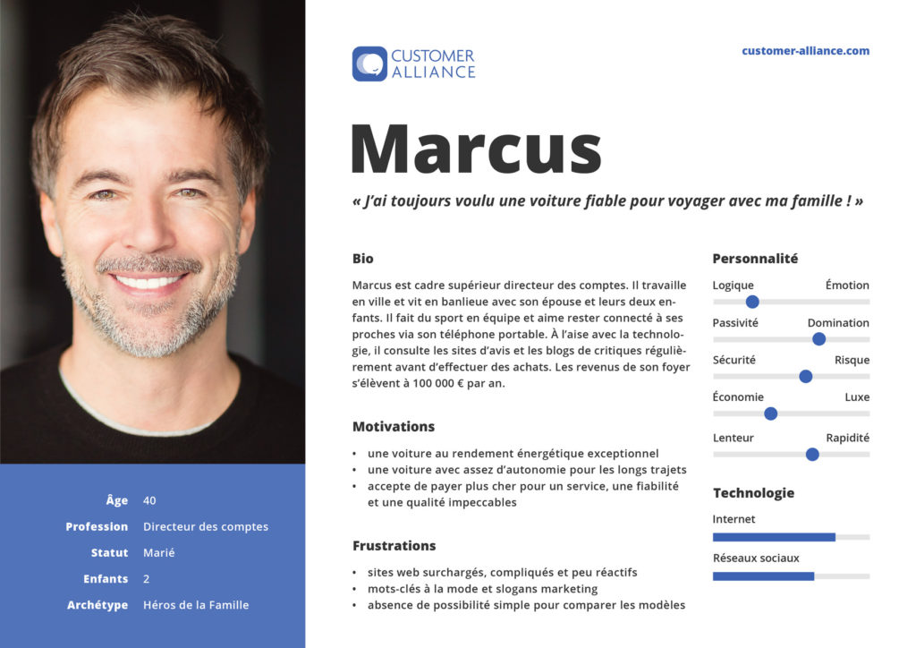 Pour que votre profil client soit le plus précis possible, basez-vous le plus possible sur votre clientèle réelle. Par exemple, de cette manière :