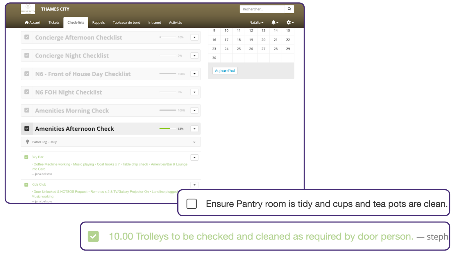 Plusieurs cahiers ont été créés pour différencier les services (conciergerie, sécurité, ménage…) et chaque collaborateur est notifié uniquement des tâches qui le concernent.
