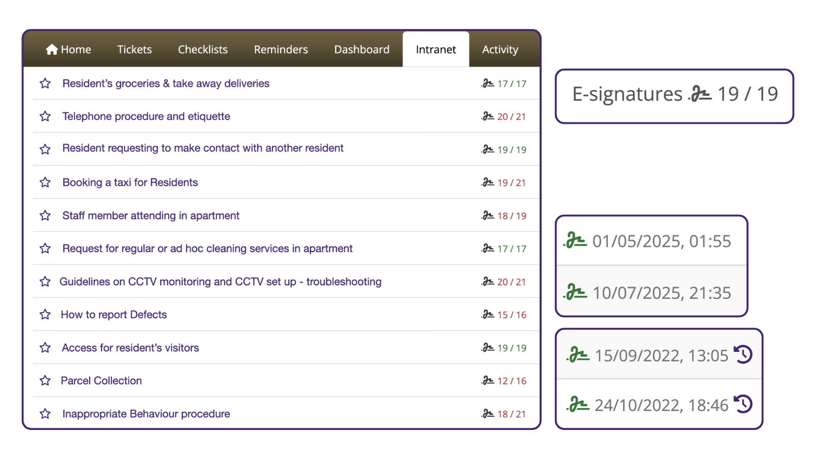 Grâce à la fonction de signatures électroniques, les managers s’assurent que tous les membres de l’équipe ont lu les procédures et documents importants.