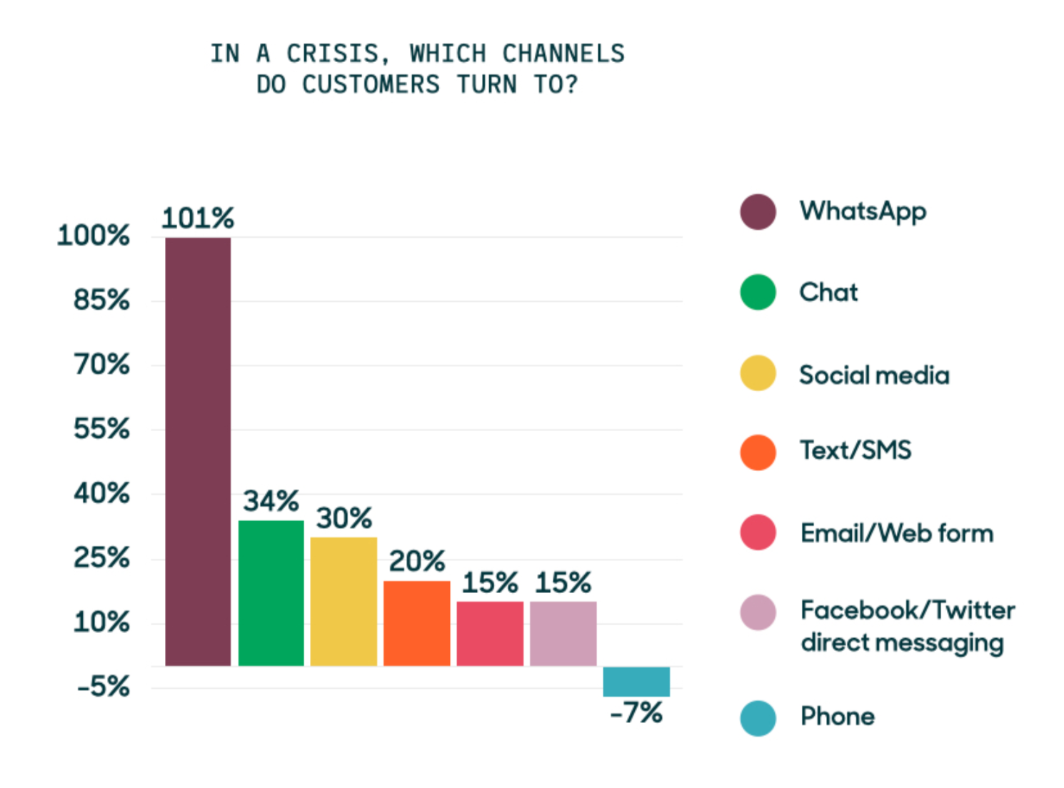 En temps de crise, les lignes téléphoniques sont saturées et les temps d’attente interminables et chaque e-mail envoyé reçoit son flot de messages d’absence. Les clients affluent vers d’autres canaux de soutien. Zendesk, logiciel de gestion de ticketing pour les équipes support a enregistré depuis fin février une hausse de 100% du nombre de ticket venant de WhatsApp, avec les chats et les SMS augmentant respectivement de 34% et 30%.