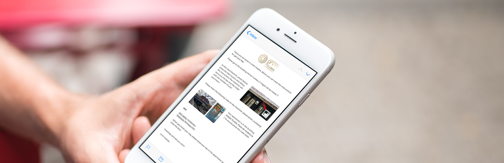Plus précisément, pour les séjours en appartement, il est essentiel de faciliter le processus d’arrivée. Nous envoyons au client de manière automatisée les instructions d’arrivée avec toutes les étapes nécessaires pour accéder à son appartement, y compris la possibilité de récupérer les clés à notre borne d’enregistrement.