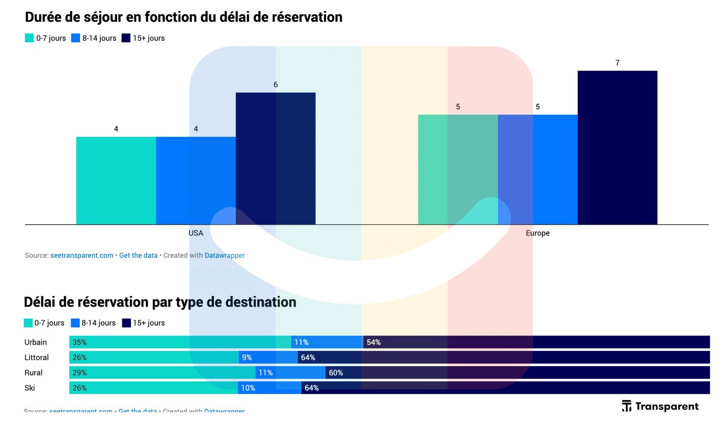 Car, en effet, en plus de déséquilibrer votre planning et votre organisation, une réservation de dernière minute rapporterait, en moyenne, 10,9% de revenus en moins par nuitée (ADR – Average Daily Rate) ! Normal … car, en général, durant cette fenêtre de réservation (de moins de 7 jours au jour-même), les hébergeurs vendent leurs chambres inoccupées en mode “promotion lastminute”. Ce sont aussi des réservations qui rapporteraient un moins grand nombre de nuitées : 5, en moyenne, contre 7 pour une réservation effectuée très en avance. Cette différence s’explique aussi : le voyageur dont les dates de vacances sont fixées longtemps à l’avance et qui veut garantir son séjour sur place réserve tôt en avant-saison (et pour un nombre de jours conséquent); le client de dernière minute se positionne plus en mode “opportuniste”: son séjour comporte moins d’enjeux (notamment, l’absence d’enfants), il est plus flexible sur ses dates et … dans tous les cas, est certain de trouver une chambre où dormir quelles que soient les circonstances.