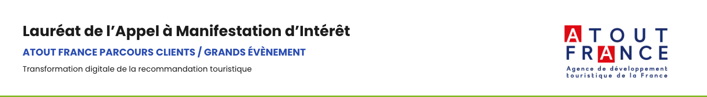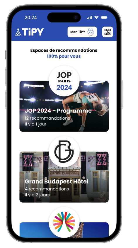 L’appel à manifestation d’intérêt “Parcours Clients / Grands événements” lancé par ATOUT FRANCE au mois d’octobre l’année dernière a permis de financer 14 projets innovants qui visent à améliorer la qualité des parcours clients pendant les Jeux Olympiques de Paris 2024. TiPY est une start-up française qui propose aux voyageurs une expérience client inédite, où le contenu de chaque TiPY voyageur reçoit les recommandations touristiques des hébergeurs, des offices de tourisme et des volontaires du tourisme dans un format ULTRA PERSONNALISABLE.
