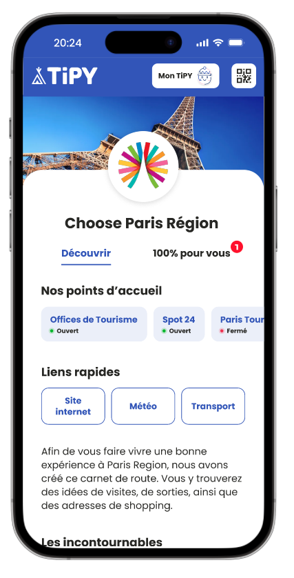TiPY : SOLUTION D’ULTRA PERSONNALISATION DE L’EXPÉRIENCE DES VOYAGEURS, UN PROJET INNOVANT CONNECTÉ À CHATGPT ET SOUTENU PAR ATOUT FRANCE, DANS LE BUT D’ENCHANTER LES TOURISTES QUI VISITERONT PARIS À L’OCCASION DES JO.