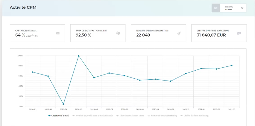 Il est impossible de penser « fidélisation » sans capter les emails de ses clients. Le CRM recense alors toutes les informations et tous les chiffres qui vous seront nécessaires pour mieux comprendre votre base de données client, et ainsi optimiser les interactions avec ces derniers.