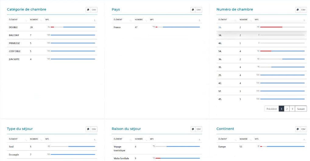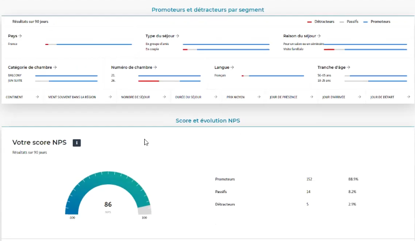 On vous fournit alors un descriptif très clair, chambre par chambre, segmentation par segmentation, sur ce qui génère des avis positifs, des avis passifs, et des avis négatifs.