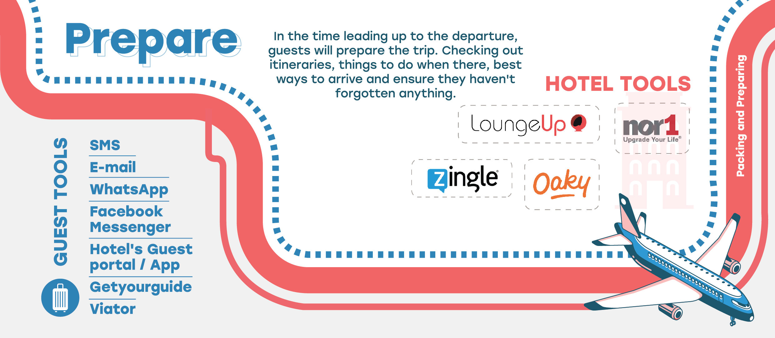 Dans la période avant le départ, le client va préparer son voyage. Il va peaufiner son itinéraire, les choses à voir sur place, lister les affaires à emmener et vérifier qu’il a bien tous ses documents de voyage.