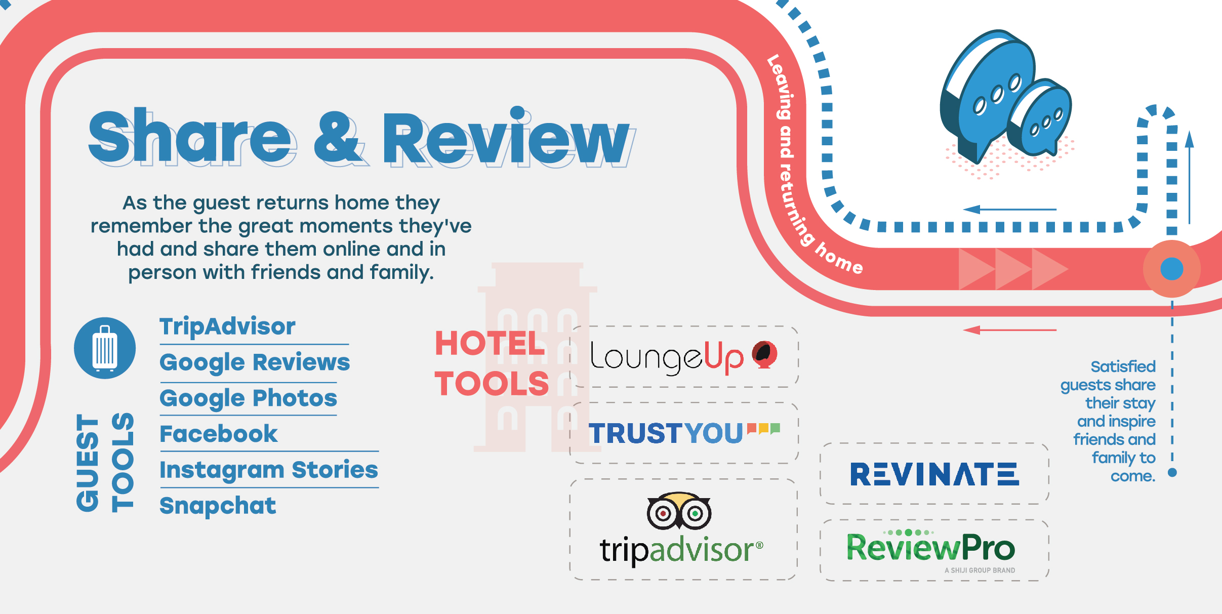 C’est à cette étape que le bouche-à-oreille fait effet. Un client content de son séjour parlera de lui-même de votre hôtel à ses proches, voire deviendra promoteur de votre établissement en partageant son expérience sur les plateformes d’avis en ligne.