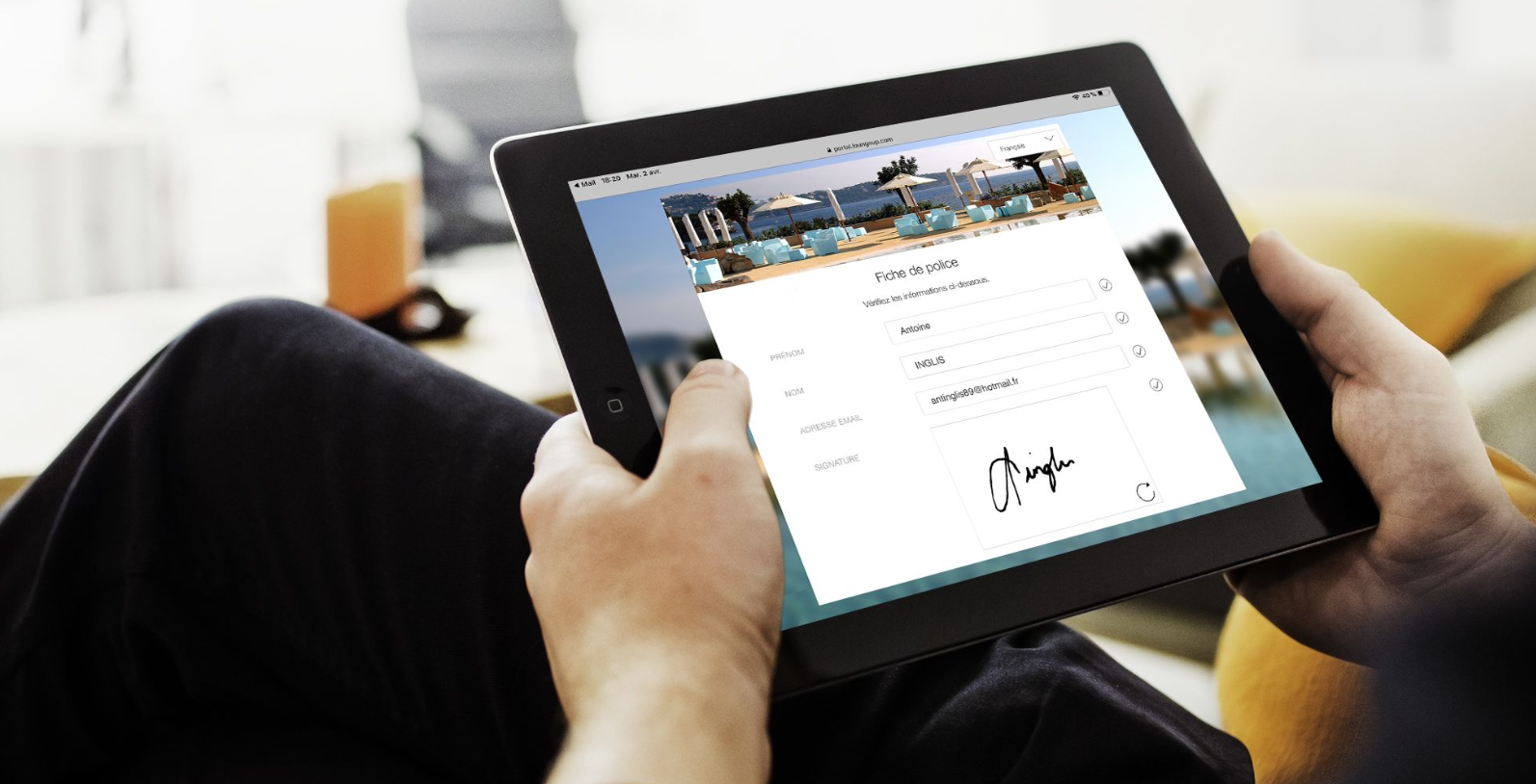 La signature électronique est déjà présente dans de nombreux domaines, pourquoi ne pas l’intégrer au check-in à l’hôtel ? La fiche de police étant déjà pré-remplie avec les informations de la réservation ou récupérées en amont, le client n’a plus qu’à signer et le tour est joué. Cette fiche de police numérique peut être envoyée au client sur son portable à son arrivée, quand il est à la réception ou sur une tablette dans le lobby ou au bar de l’hôtel.