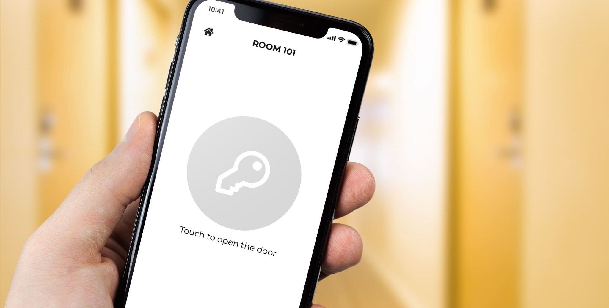 Une clé de chambre dématérialisée est l’équivalent sur mobile du badge pour ouvrir la chambre. Plus besoin de carte physique ni donc d’encodage, tout est géré automatiquement et se met à jour si le numéro de chambre est modifié dans le PMS.