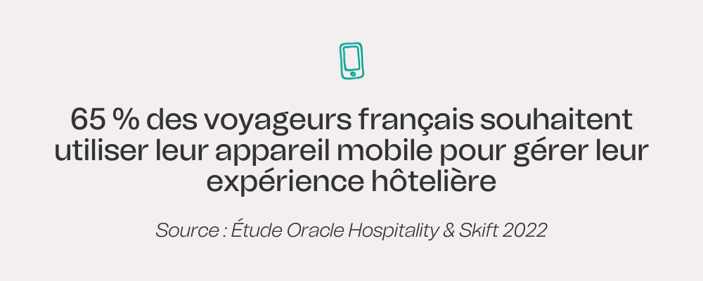 60 % des voyageurs français estiment qu’ils sont plus susceptibles de séjourner dans un établissement qui propose une technologie en libre-service (73 % à l’international) — Source : Étude Oracle Hospitality & Skift 2022, L’hôtellerie en 2025 : automatisée, intelligente… et plus personnalisée
