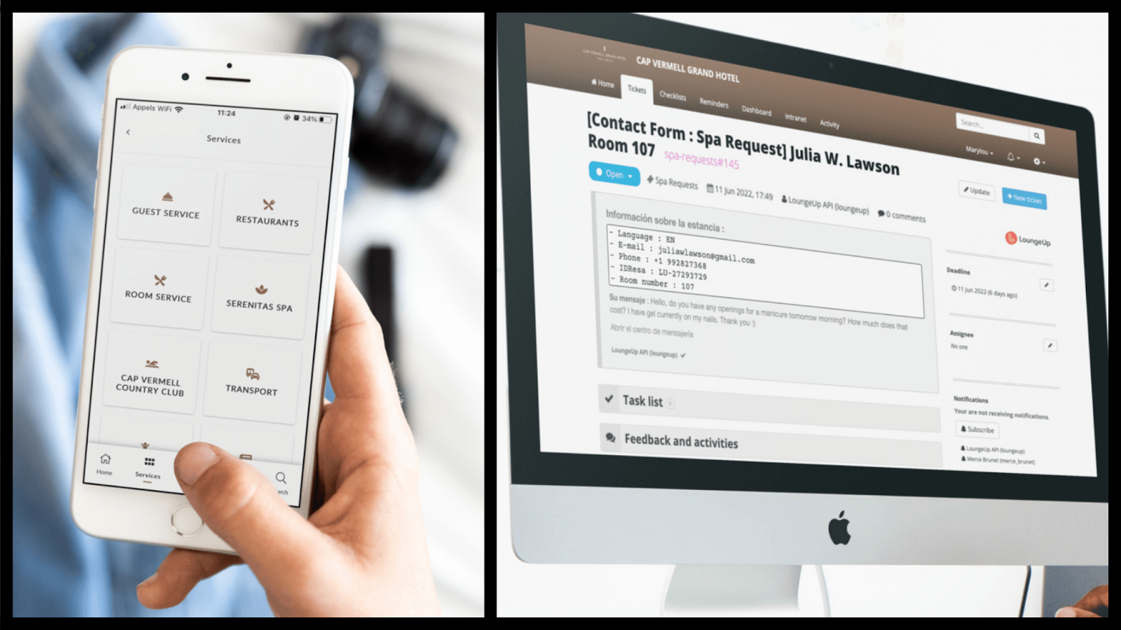 ❯ L’établissement Cap Vermell Grand Hotel s’est ainsi équipé de la solution de gestion des opérations internes, Dmbook Pro, pour gérer efficacement toutes les commandes et requêtes des clients. Cette solution est directement reliée à leur portail client sur les tablettes en chambre. Ainsi, qu’un client formule une demande sur la tablette dans sa chambre, au téléphone ou en physique à la réception, sa demande sera automatiquement enregistrée dans cet outil.