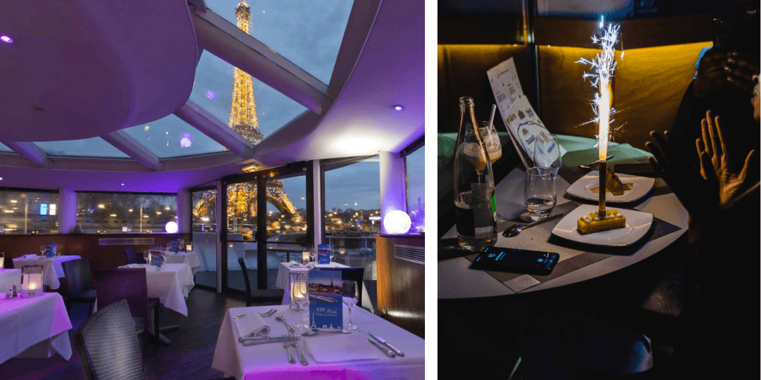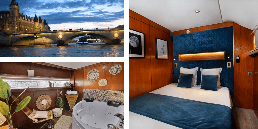 Le VIP Paris est un hôtel de croisière qui propose une expérience romantique sur la Seine aux amoureux. Il est l’unique Yacht-Hôtel navigant de la capitale avec 17 cabines doubles dont 7 suites avec spas privés, entourées d’une vue imprenable sur Paris.