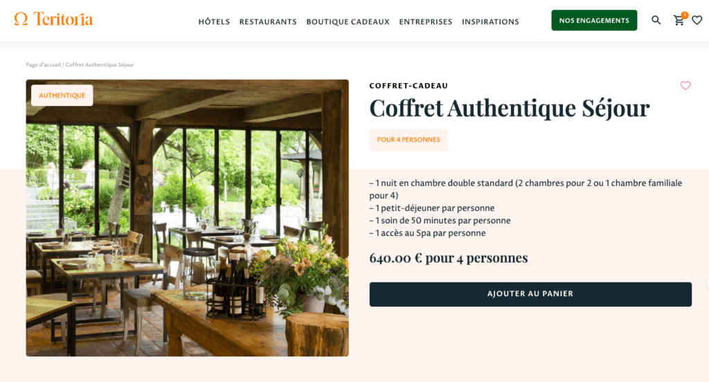 La boutique cadeaux en ligne de Teritoria propose désormais une gamme élargie d’expériences à offrir sous forme de coffret cadeaux, comme des séjours romantiques, des weekends gastronomiques, et des parenthèses bien-être utilisables à travers l’ensemble du réseau d’établissements partenaires. Cette innovation intègre aussi des cartes cadeaux (avec un montant à définir), avec la possibilité de créer une cagnotte, à laquelle plusieurs participants peuvent contribuer. Le bénéficiaire du coffret ou carte cadeau peut ensuite choisir une des nombreuses maisons du réseau afin d’y dépenser le montant alloué ou la prestation à consommer. Ces offres sont désormais accessibles en ligne grâce à la technologie de MyBeezBox, assurant une expérience utilisateur fluide et personnalisable. En parallèle, elles facilitent la gestion quotidienne des ventes du réseau et des établissements membres du réseau Teritoria.