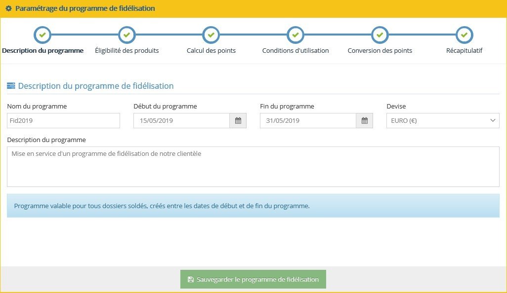 Comme vous pouvez le constater, la configuration de vos programmes de fidélisation est extrêmement simple d’utilisation.