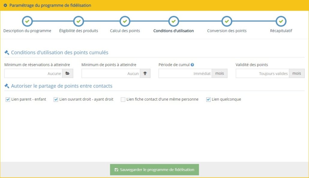 Une fois l’étape 3 accomplie, il vous faudra définir les modalités d’utilisation et de partages des points comme indiqué ci-dessous