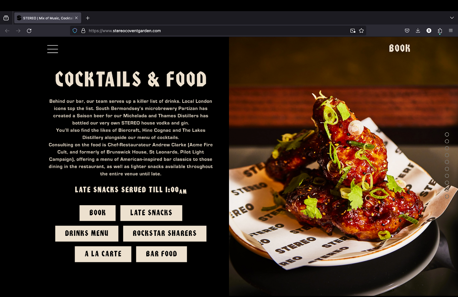 4. Contenu visuel riche: le rapport Webflow2 examine l’impact d’un contenu visuel de haute qualité sur l’expérience de l’utilisateur et les conversions sur le site web. Les outils web modernes sont de plus en plus performants pour gérer des contenus de haute qualité tout en maintenant des vitesses de chargement rapides, à la hauteur du luxe et de l’exclusivité de votre marque3. Dans la conception du site web de votre hôtel, mettez en œuvre des images et des vidéos de haute qualité qui présentent la propriété et les expériences offertes dans un environnement virtuel, optimisé pour les vitesses de chargement sur différentes plateformes. Le site web de notre client Stereo Covent Garden est un exemple de site web d’hôtel à chargement rapide avec des images de très haute qualité :