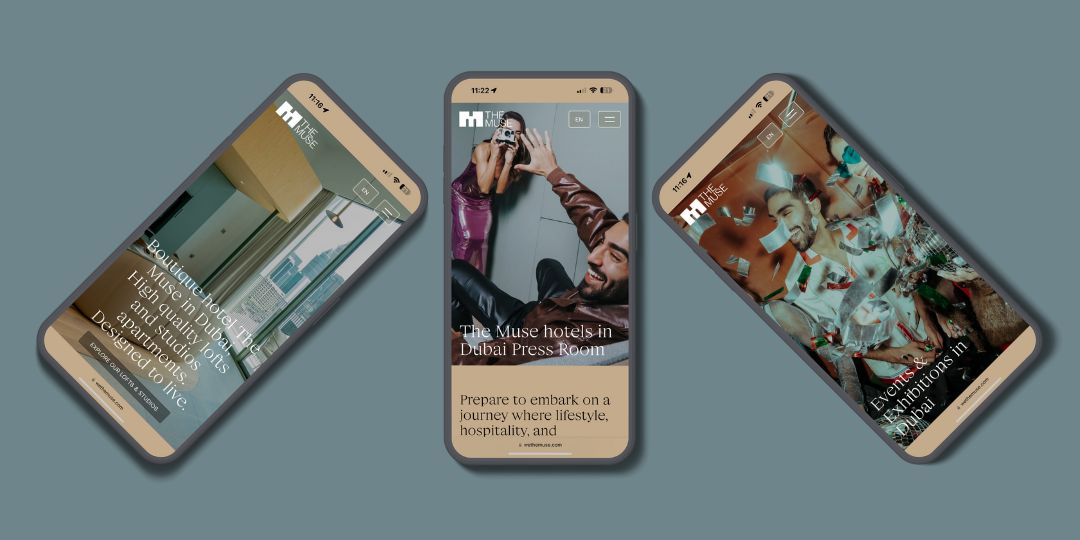3. Optimisation mobile: le rapport Webflow2 aborde également l’importance des expériences interactives offertes aux visiteurs des sites web des hôtels. C’est une tendance qui existe depuis un certain temps, mais les données montrent que de nombreuses équipes de marketing continuent de créer des sites web axés sur les ordinateurs de bureau, sans se soucier des détails lorsqu’il s’agit de l’adaptation dynamique aux écrans mobiles. Étant donné que près de 80 % du trafic des sites web est mobile1, une conception réactive est absolument indispensable, car une mauvaise expérience mobile peut gravement affecter les taux de conversion. Le site web de l’hôtel de notre client, The Muse Dubai, est un excellent exemple de conception mobile.