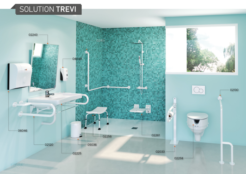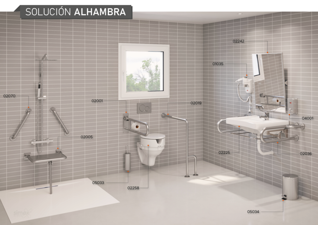 Pour équiper les salles de bains adaptées aux fauteuils roulants, il faut du mobilier spécifique, que vous pouvez trouver chez Simex. Parmi les produits que nous proposons pour les salles de bains adaptées, citons les chaises de douche, les miroirs inclinables, les ensembles de lavabos, les barres d’appui et les toilettes. Vous pouvez également consulter notre catalogue complet d’aides techniques ici.