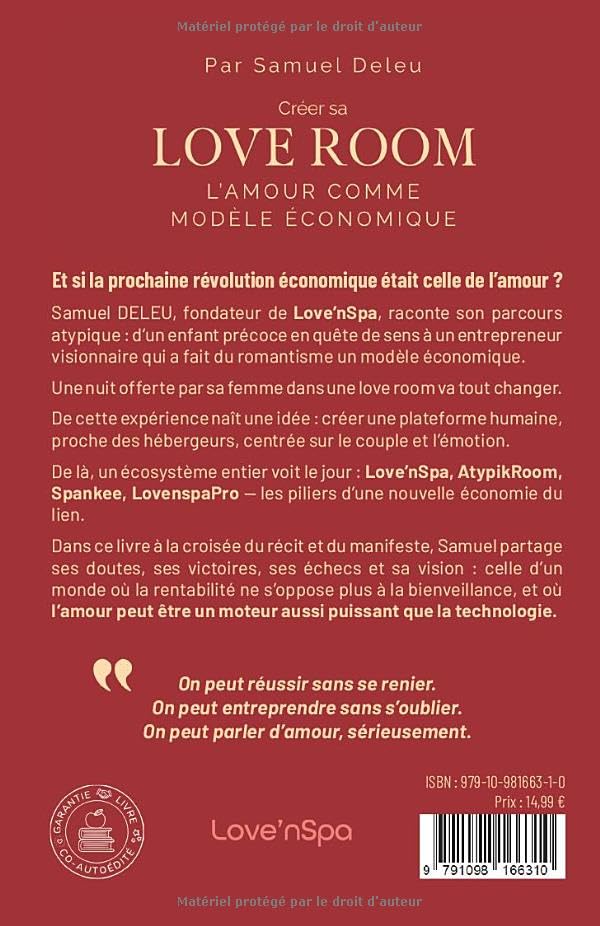 L’essor des love rooms pose une question centrale : comment l’intimité et l’émotion peuvent-elles devenir des leviers économiques durables ? C’est précisément cette réflexion que prolonge le livre L’Amour comme modèle économique, publié par Samuel Deleu.