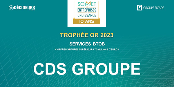 CDS GROUPE remporte le trophée d’OR du Sommet des Entreprises de Croissance dans la catégorie des services BtoB de plus de 70 Millions d’euros en France.