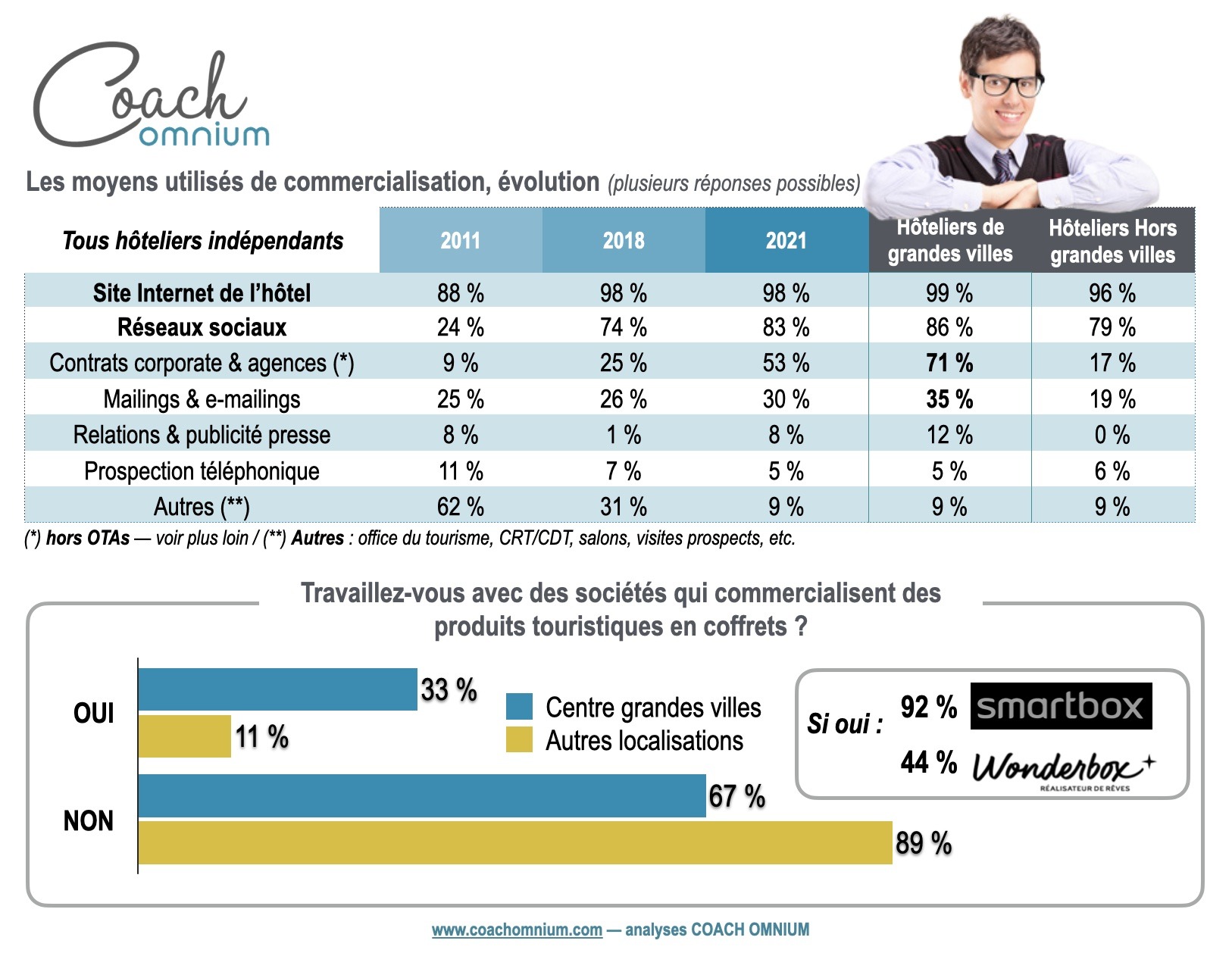 — Aimable avertissement — Cette enquête quali-quantitative exclusive a été pensée, élaborée et traitée par Coach Omnium, société d’études et de conseil spécialisée dans le tourisme et l’hôtellerie. Coach Omnium est propriétaire des droits selon la Loi N° 57-298 du 11 mars 1957 sur la propriété commerciale, industrielle, littéraire et artistique (Journal Officiel du 14 mars 1957 et rectificatif Journal Officiel du 19 avril 1957). Mention obligatoire après autorisation : « source Coach Omnium« . Copyright — © 2021 / Coach Omnium.