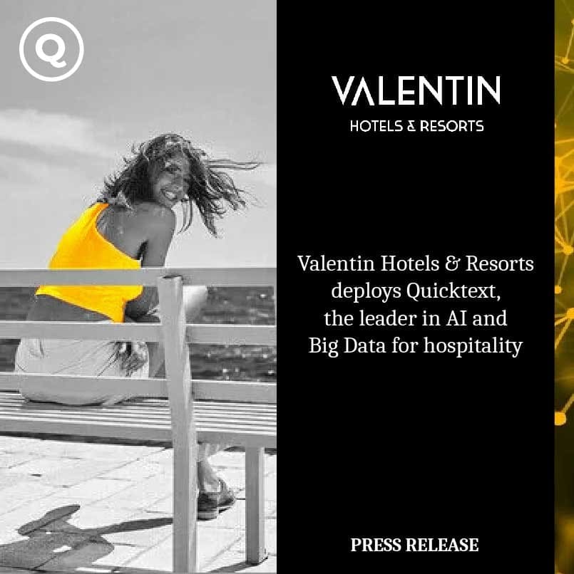 Quicktext, le spécialiste de l’hôtellerie en matière d’IA et de Big data, annonce un nouveau partenariat avec Valentin Hotel Group, une prestigieuse chaîne d’hôtels indépendants très présente dans trois pays : Espagne, Mexique et Cuba, avec un portefeuille de quatorze établissements soigneusement sélectionnés.