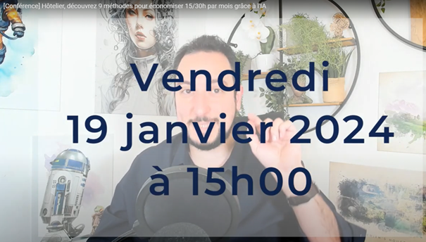 Le vendredi 19 janvier à 15h, Tony Loeb, expert en marketing hôtelier, vous propose une webconférence exclusive pour vous donner les astuces qui vous feront économiser 15 à 30h par mois grâce à l’intelligence artificielle ! Profitez du code promo GHR pour économiser 50% sur votre inscription !