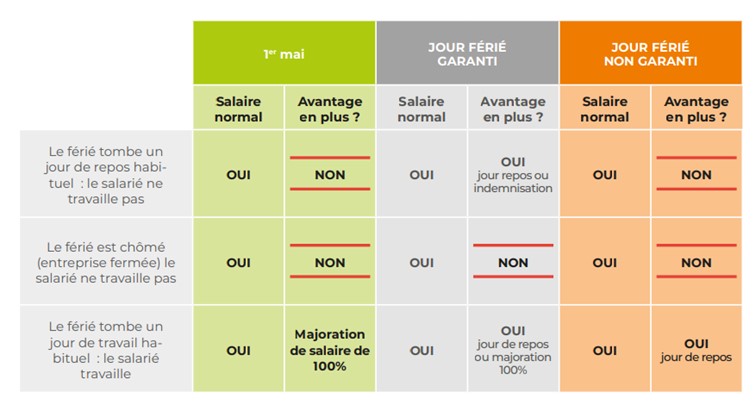 Outre le 1er mai, les 10 jours fériés par an sont décomposés de la manière suivante :
