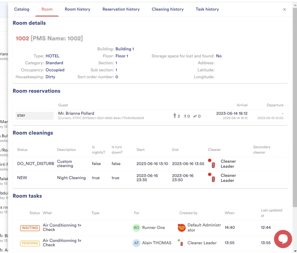 Rooms overview – added tabs with specific histories – room history, reservation histories, tasks history.