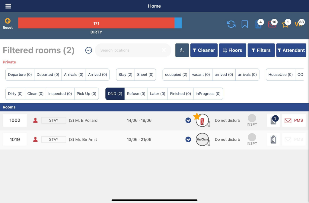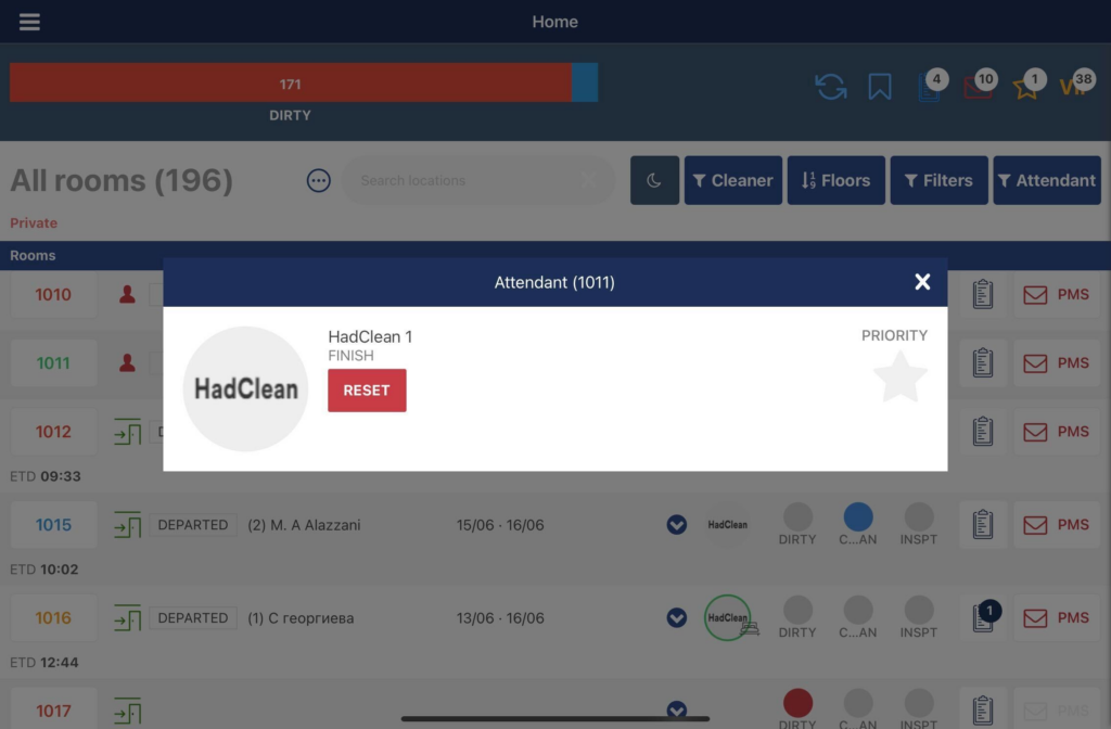 Reset cleaning : you can reset a cleaning. the room will turn dirty and it will disappear fromt the list of cleaned rooms in the attendant app.