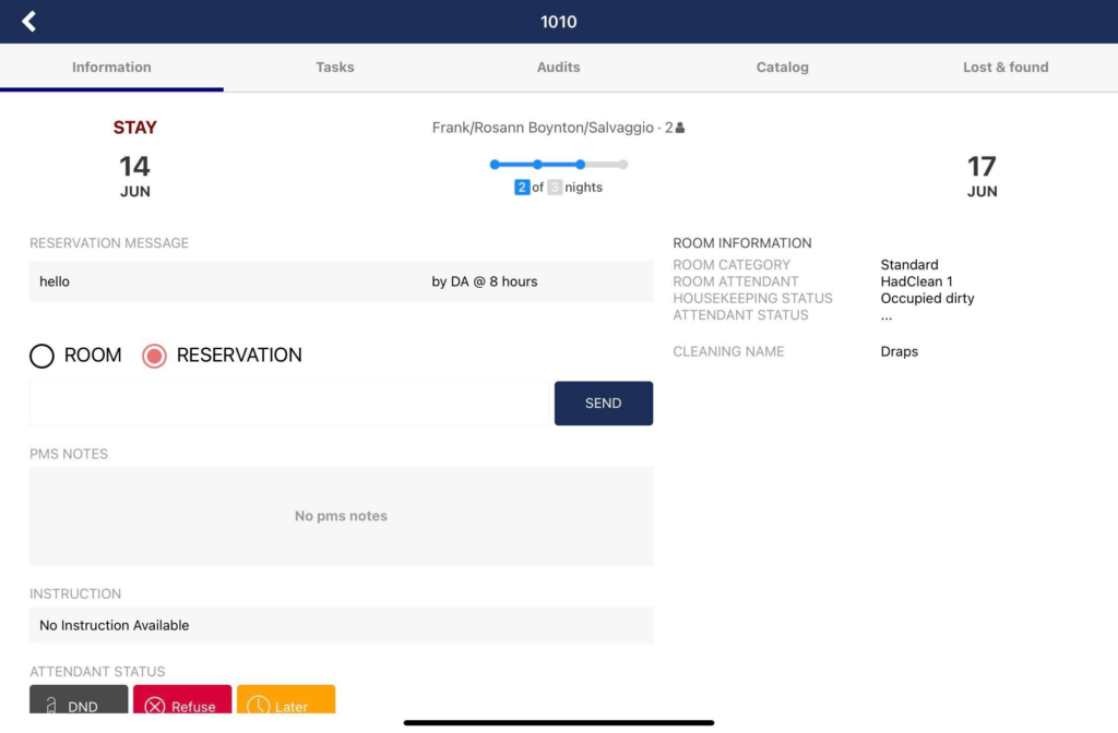 Room instructions – reservation CICO dates and front office status is now displayed as reservation description.