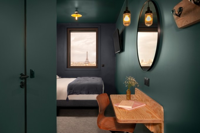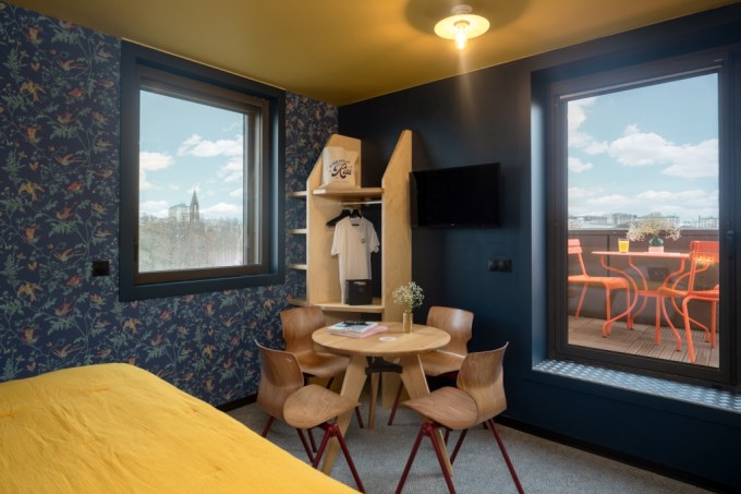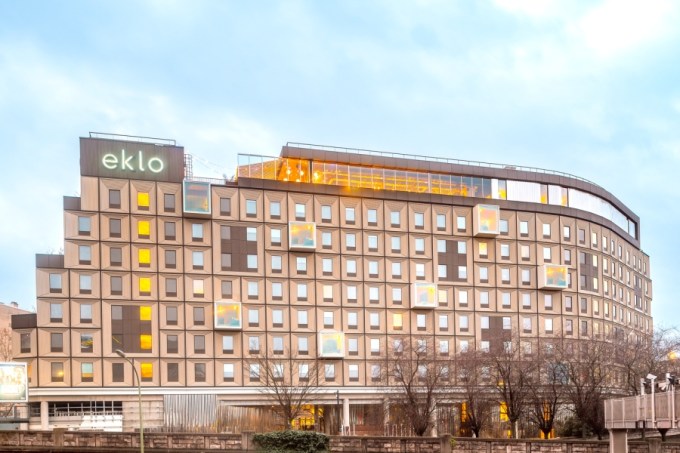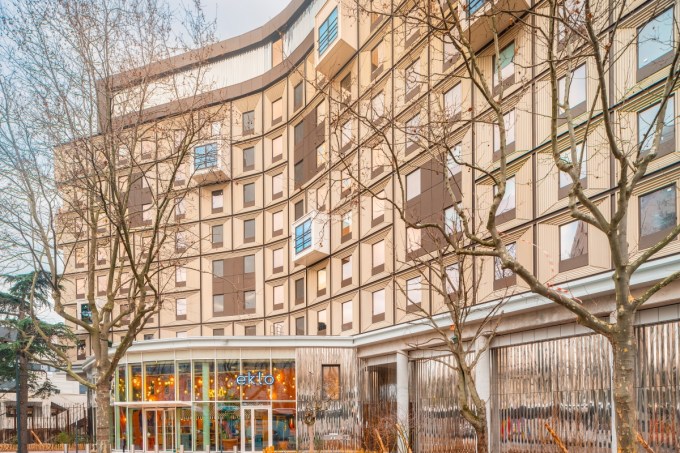 Retenu en 2022 sur un appel d’offres de ViParis, l’opérateur de Paris Expo porte de Versailles, le nouvel Eklo a ouvert ses portes le 8 février dans un immeuble neuf signé Valode & Pistre. Sur 7 500 m2, Eklo, locataire des lieux, déploie une offre économique, conviviale et pro-écologie, avec une gamme de 304 chambres et dortoirs répondant à tous les types de voyageurs. Cet Eklo se distingue aussi par son bar-restaurant-rooftop panoramique de 300 places assises, d’esprit guinguette, French Kiss, avec en prime une vue imprenable sur Paris et la Tour Eiffel.