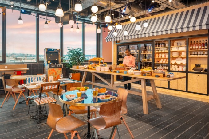 Lieu de vie chaleureux pour le quartier, le projet accueille une variété d’espaces innovants, coworking, cuisine participative, spectaculaire restaurant panoramique sur tout Paris ainsi qu’un grand choix de chambres. Ils inspirent le dessin des façades constituées de modules réguliers à facettes, ponctuées par des volumes en saillies, des changements d’échelle et soulignées par le grand volume horizontal du restaurant.