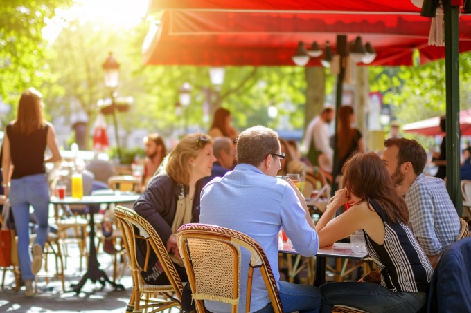 La hausse des dépenses en Hébergement-Restauration a un peu ralenti en 2023 (+5,5 % en volume) tout en conservant une tendance élevée. Et elles progressent plus rapidement que l’ensemble de la consommation des ménages (+0,7 %). Photo : Ckybe – Adobe Stock – généré à l’aide de l’IA