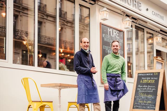C’est l’histoire d’une reconversion. Quand Arnaud Dalibot quitte LVMH, l’ancien directeur de la marque Moet & Chandon aux États-Unis veut “concilier son intérêt pour la restauration et le monde agricole, tout en respectant ses aspirations écologiques“. En 2014, à contre-courant, il plante Mûre, sa micro-cantine de 45 m², rue Saint-Marc à Paris : “Alors que le burger était à la mode, j’ai proposé une cuisine à dominante végétale, entièrement faite maison, avec des produits bio à 95 %, de saison, les plus locaux possible. Les recettes familiales du monde entier sont servies dans de grands plats au comptoir : paella, couscous, risotto, gratins, lasagnes, quiches, salades, soupes…“, détaille-t-il.