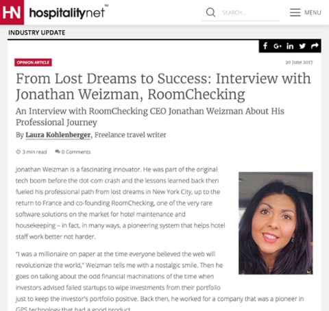 Jonathan Weizman is a fascinating innovator. He was part of the original tech boom before the dot-com crash and the lessons learned back then fueled his professional path from lost dreams in New York City, up to the return to France and co-founding RoomChecking, one of the very rare software solutions on the market for hotel maintenance and housekeeping – in fact, in many ways, a pioneering system that helps hotel staff work better not harder.