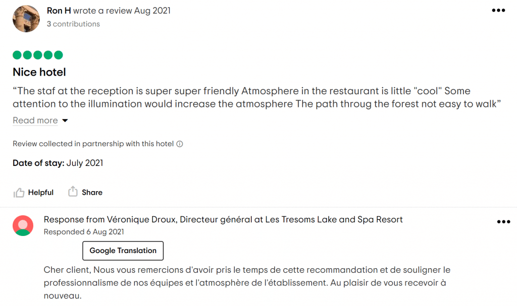 Ce point est très important surtout dans les avis négatifs. Le fait de rappeler un point positif de votre hôtel adoucit les critiques qui ont pu être dites avant.