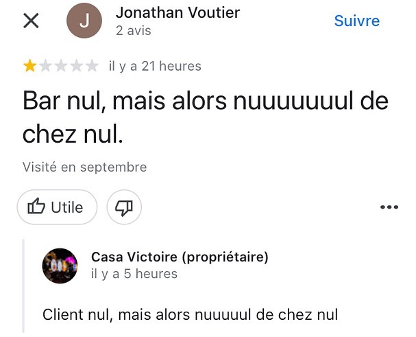 Nombreux sont les établissements qui répondent uniquement aux avis négatifs. Cela renvoie une mauvaise image, c’est pourquoi il est préférable de répondre aux mauvais comme aux bons commentaires.