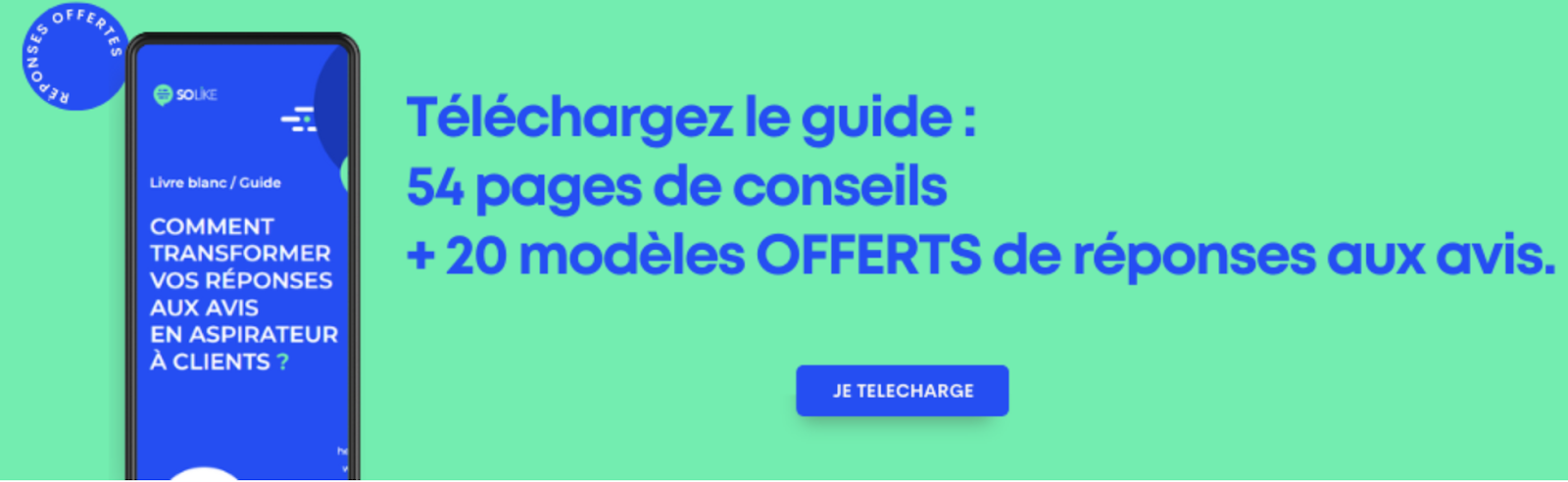 Pour répondre rapidement et facilement à tous vos avis clients. SoLike est un générateur de réponses pour vos avis clients. Il vous propose une version gratuite pour pouvoir tester sur vos avis.