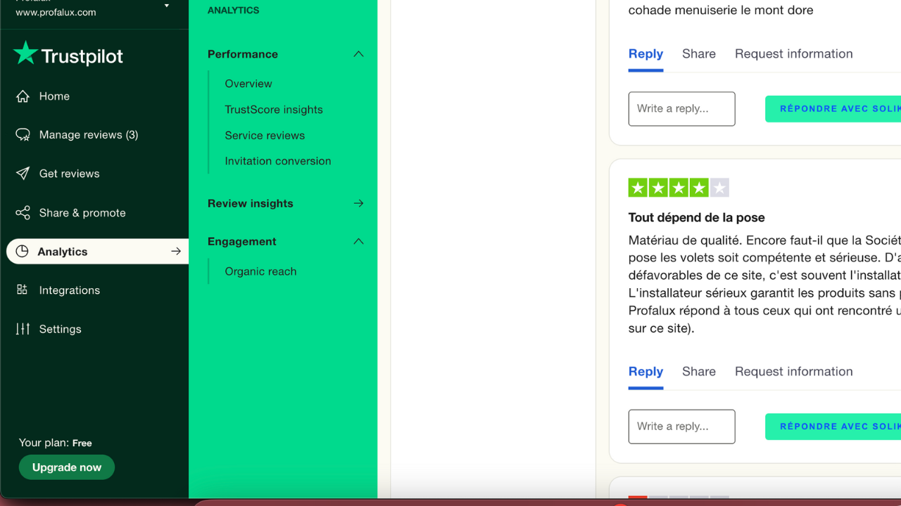 Trustpilot : Trustpilot utilise un système de modération hybride, combinant des processus automatisés et des vérifications manuelles. Les avis suspects peuvent être signalés par les utilisateurs, déclenchant une enquête approfondie menée par l’équipe Trustpilot. (ps: Solike est disponible sur TrustPilot pour générer des réponses et vous aider à répondre rapidement)