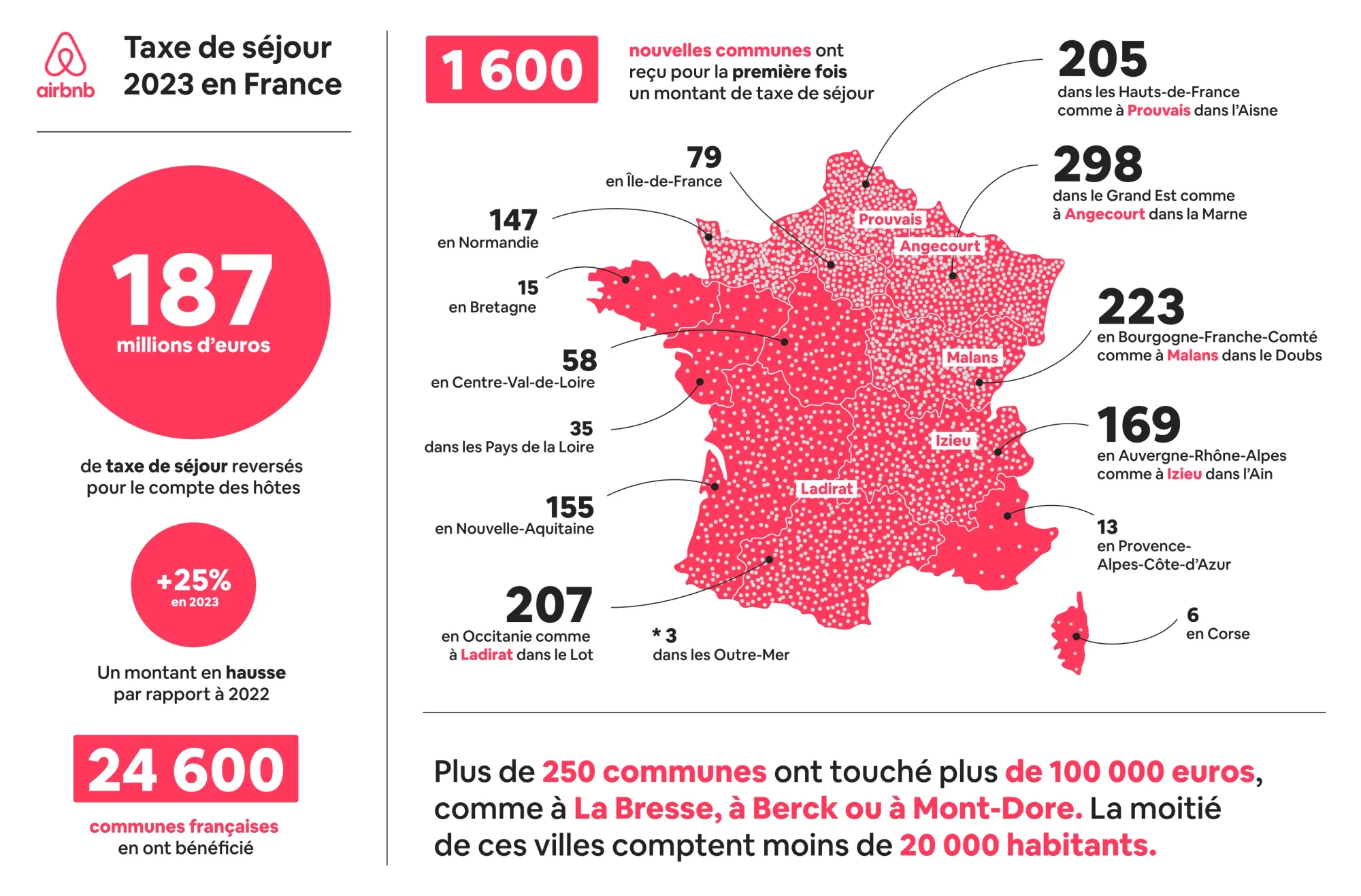 Comme chaque année à cette époque, Airbnb publie la liste des communes auxquelles elle s’est engagée à reverser la taxe de séjour (prélevée à la source) pour le compte de ses “hôtes” et des collectivités concernées. Cette année, plus de 1 600 nouvelles communes ont reçu un montant de taxe de séjour pour la seule année 2023 …