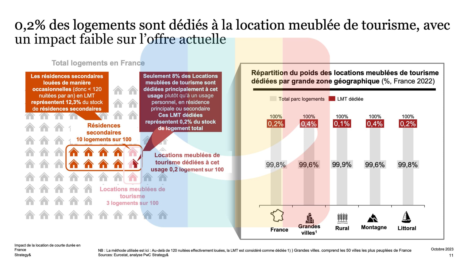Pour Airbnb, d’ailleurs, cette situation relèverait d’une distorsion d’analyse du marché immobilier: selon une récente étude stratégique de la plateforme, seuls 0,2% des logements français seraient dédiées à la location meublée de courte durée et les tensions qui apparaîtraient sur l’offre immobilière globale seraient plutôt liées à la pénurie de logements causée par la très forte proportion de logements vacants … qui péseraient 8,2% du parc immobilier français, soit 41 fois plus que le parc de la location de “courte durée”.